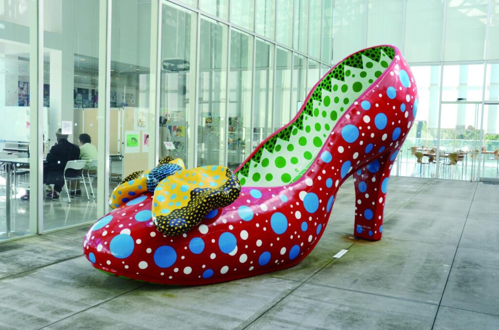 広大な園内には、国内外の著名な作家たちによる大小さまざまのユニークな作品23点が展示されています。日本を代表する芸術家草間彌生さんはじめ個性的な作品を目にすると、思わず立ち止まりたくなります。石や鉄・プラスチックなど、いろいろな素材でつくられたこれらの作品は、もともとの地形や樹木を生かしてバランスよく展示され、約2キロの園路を散策しながら、じかに手でふれたり座ったりして鑑賞できるようになっています。また、スマートな外観のアートホールもあります。