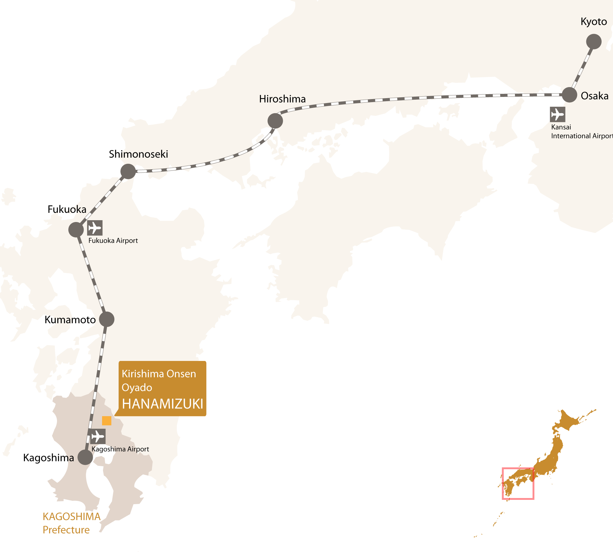 霧島神宮駅から宿までの交通手段はタクシーまたは路線バスがございます。こちらをご覧ください。